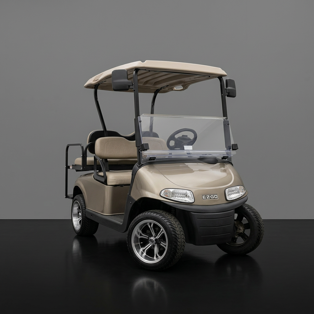 Experience the perfect blend of style, performance, and reliability with the 2015 E-Z-GO RXV, now available at Dave Warren Golf Carts & Powersports. This pre-owned gem boasts a sleek gold exterior that turns heads wherever you go. Designed with advanced AC Drive technology, the RXV offers up to 25% more efficiency than traditional DC systems, ensuring a smooth and powerful ride across various terrains.