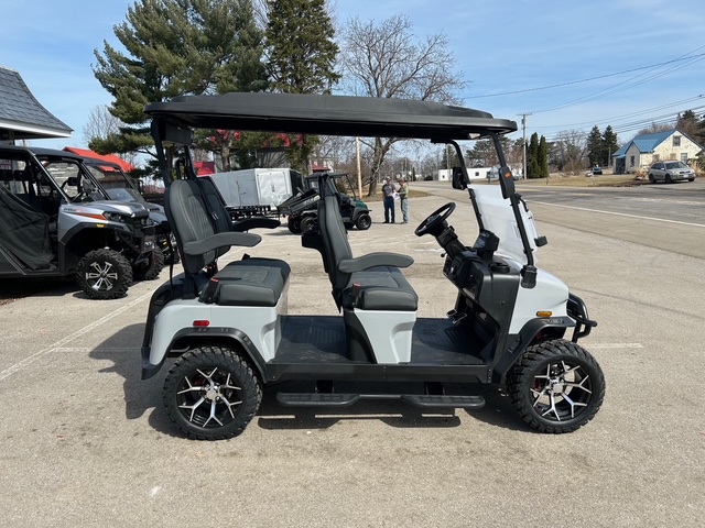 Denago Golf Carts may be a newer player in the industry, but they are already making waves with their innovative designs and features. Their modern designs and impressive specifications stood out among the more traditional options. The LiFePO4 Lithium Battery powers the 5KW AC motor, and the cart includes many of the essentials you’d expect, such as LED headlights and taillights, four-wheel hydraulic brakes, and 14-inch wheels with 23-inch all-terrain tires for enhanced off-road capability. One area where the Rover XL excels is in practical features. The cart comes with multiple USB ports, rear seat grab bars, and folding front windshield for anyone planning to use the cart in various weather conditions. The rear seat assembly also adds versatility, with cup holders and a sturdy rear grab bar to keep passengers secure.