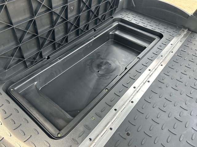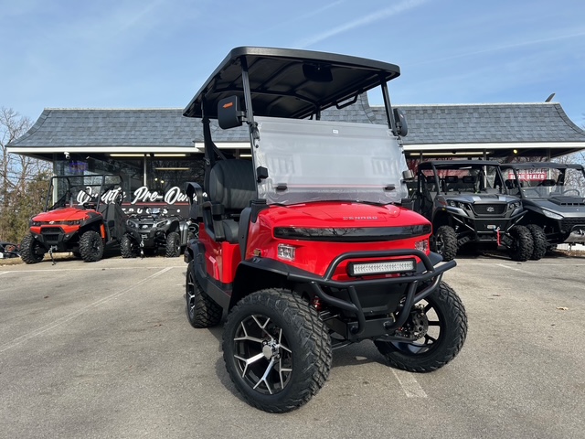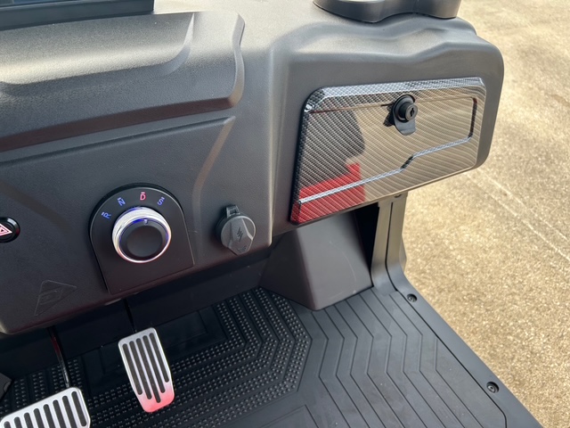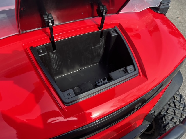 The design of these models showcases futuristic feel, with a front end reminiscent of the Tesla Cybertruck. Stylish wheels and an aggressive brush guard complement the look. Available in a variety of cool colors like Lava, Blue, White, Black, and more, you can easily find a cart that fits your vibe. Other notable exterior features include standard LED lights, side mirrors, a storage compartment, a windshield, and a canopy with grab handles.