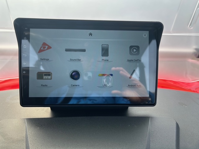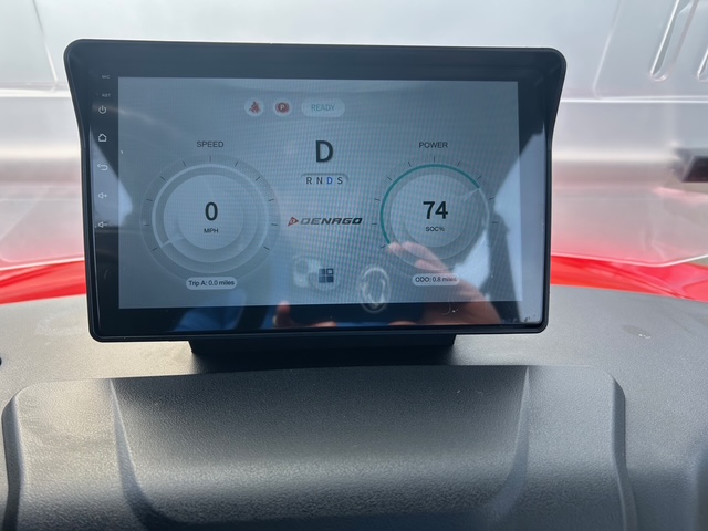Denago golf carts feature a digital dash display providing key information like speed, battery level, and mileage, along with a backup camera. They also feature Apple CarPlay® and Android Auto® for seamless connectivity.