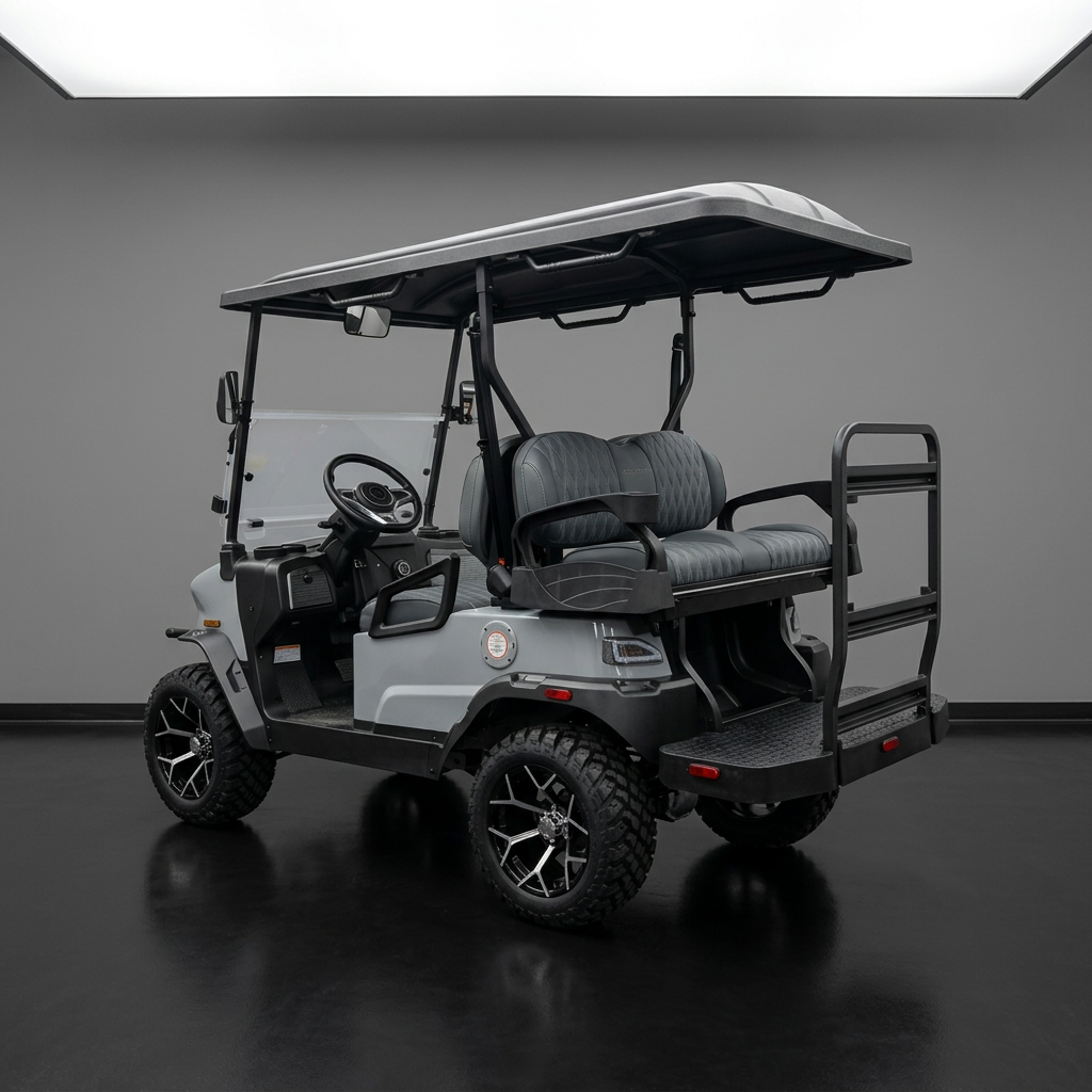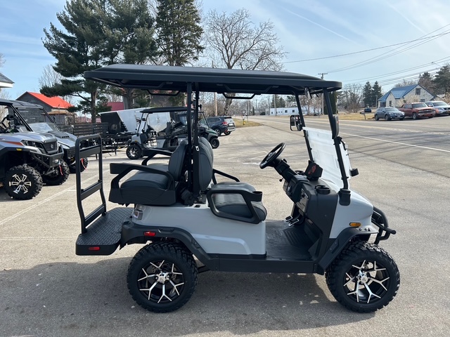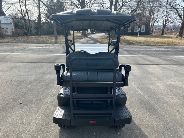 The design of these models showcases futuristic feel, with a front end reminiscent of the Tesla Cybertruck. Stylish wheels and an aggressive brush guard complement the look. Available in a variety of cool colors like Lava, Blue, White, Black, and more, you can easily find a cart that fits your vibe. Other notable exterior features include standard LED lights, side mirrors, a storage compartment, a windshield, and a canopy with grab handles.