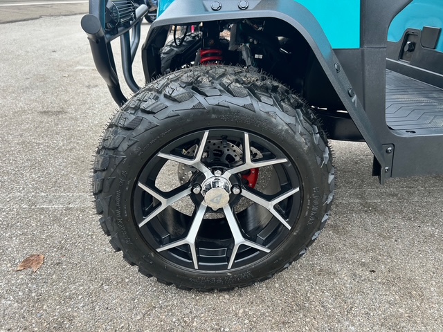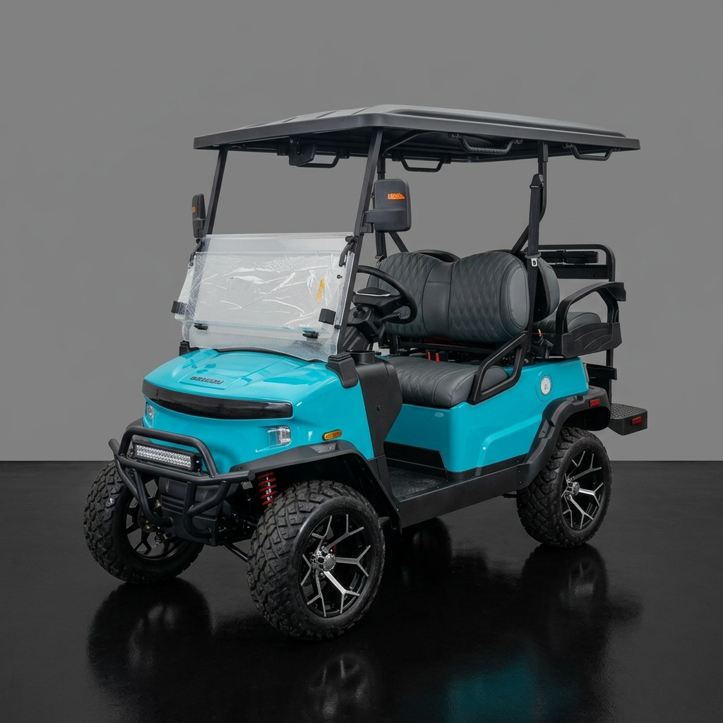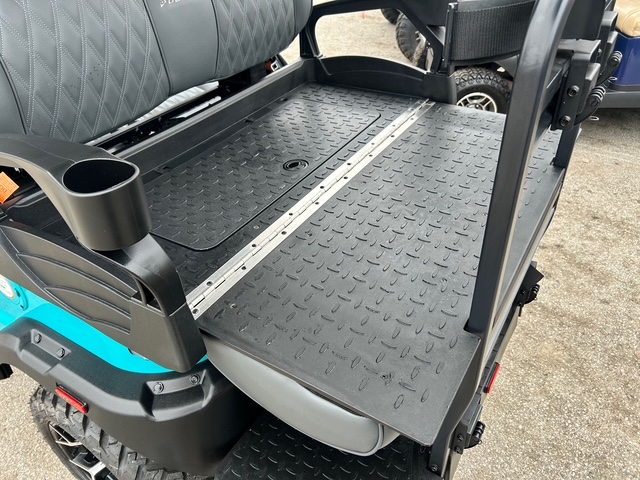 The design of these models showcases futuristic feel, with a front end reminiscent of the Tesla Cybertruck. Stylish wheels and an aggressive brush guard complement the look. Available in a variety of cool colors like Lava, Blue, White, Black, and more, you can easily find a cart that fits your vibe. Other notable exterior features include standard LED lights, side mirrors, a storage compartment, a windshield, and a canopy with grab handles.