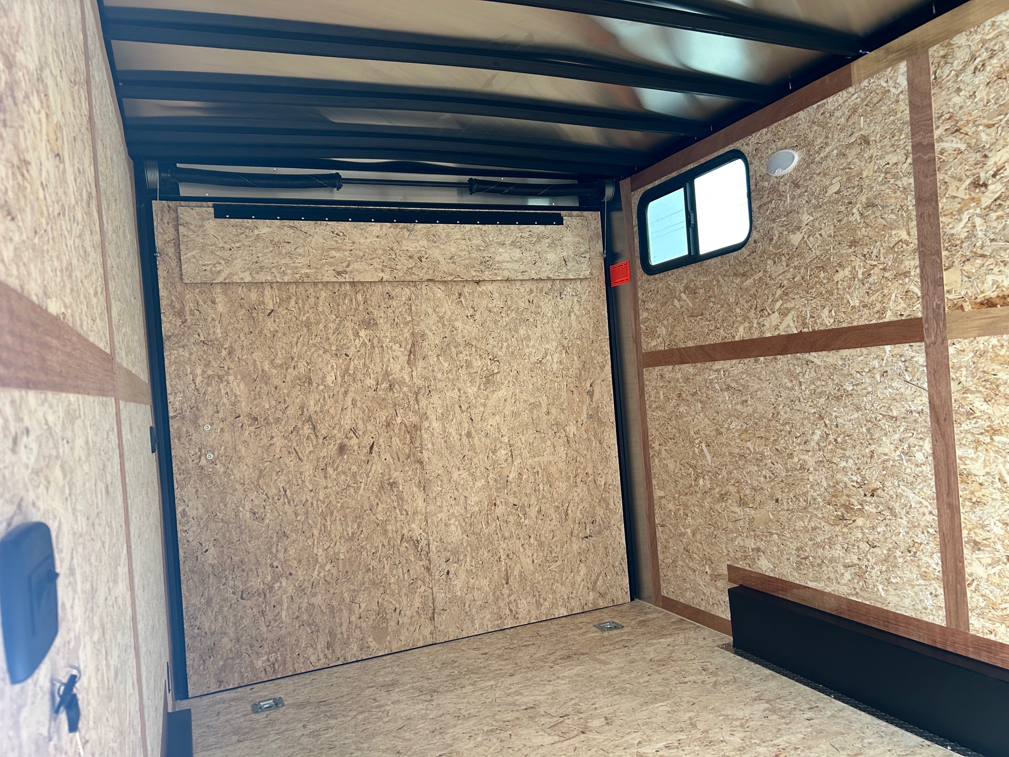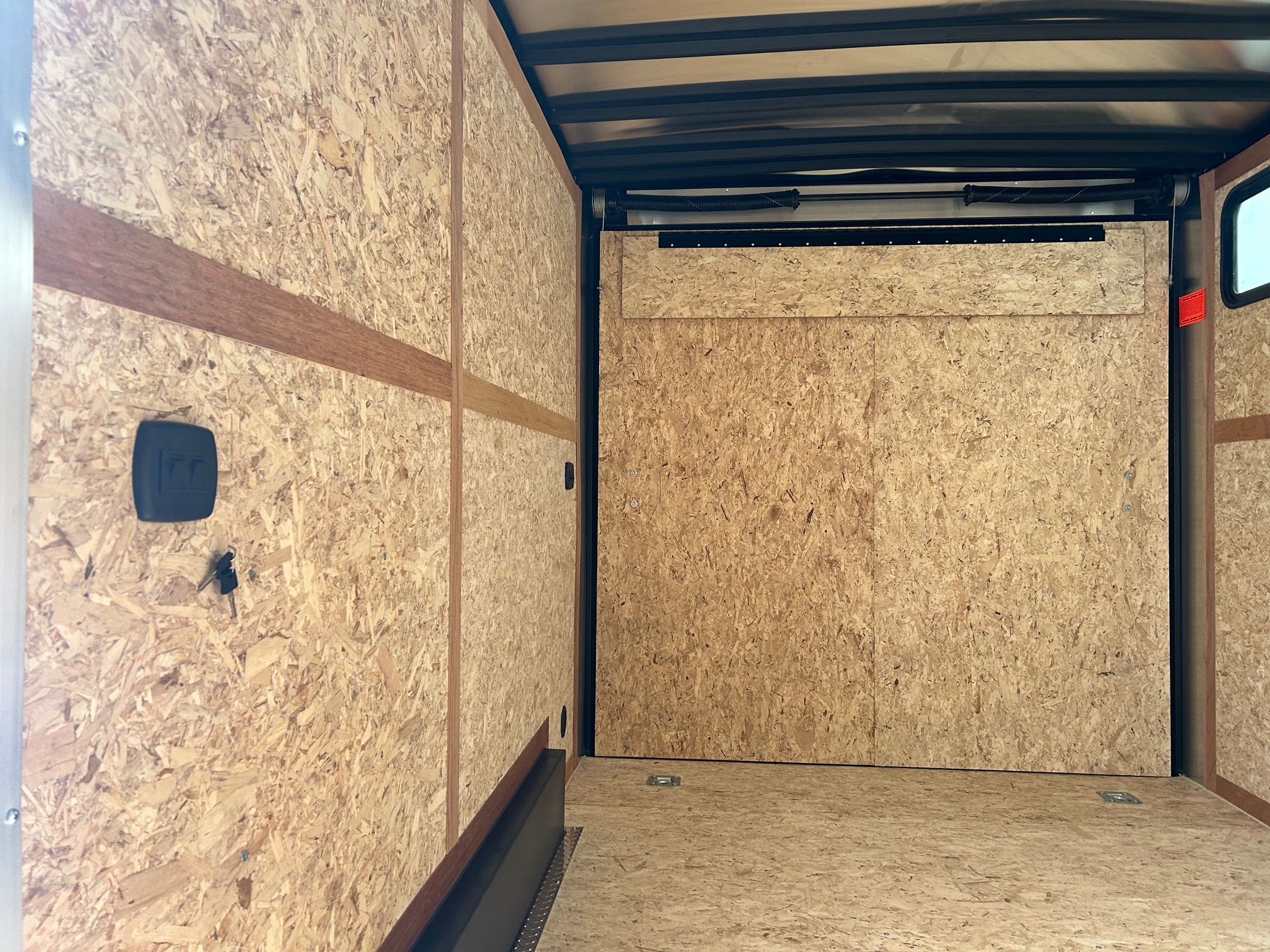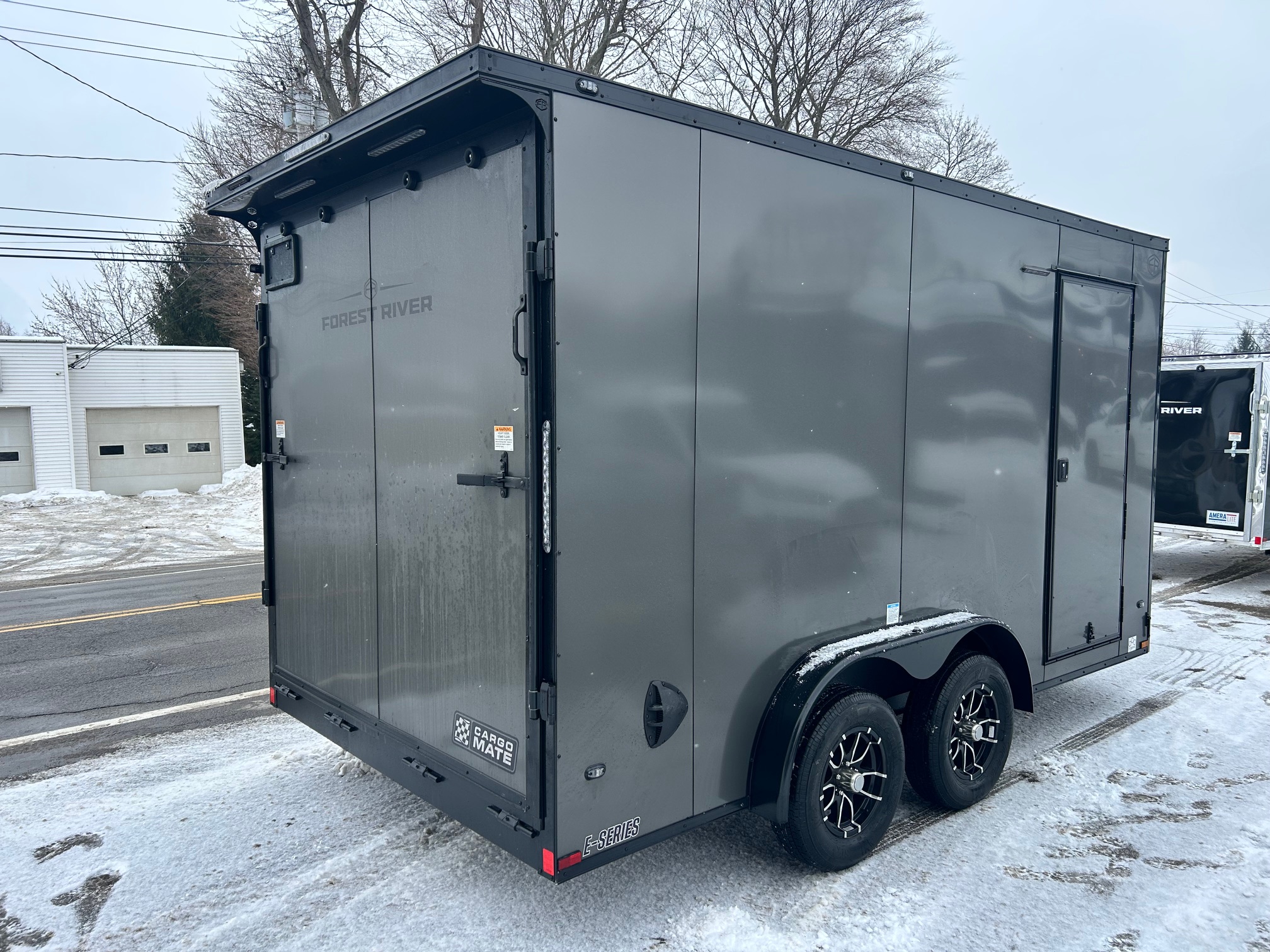 E-Series trailers range in size from a 5’ x 8’ Single axle to a 8’ x 26’ Tandem axle model. They feature an 18″ front wedge for extra storage space and easier towing. The 5-6 foot wide models offer a standard payload capacity from 1,200 – 5,400 lb. while the 7-8 foot wide models offer a capacity of 1,900 – 3,900 lb. Double Barn doors (single on 5’ x 8’) are the standard rear door for the E-Series with an optional ramp door available.